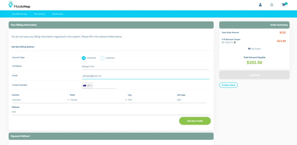 - Đăng ký tài khoản tại MobileHop